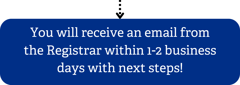 After registering your student for courses, you will receive an email from our Registrar within 1-2 business days with your next steps.